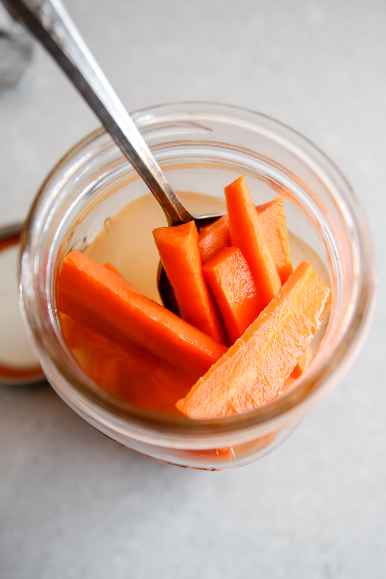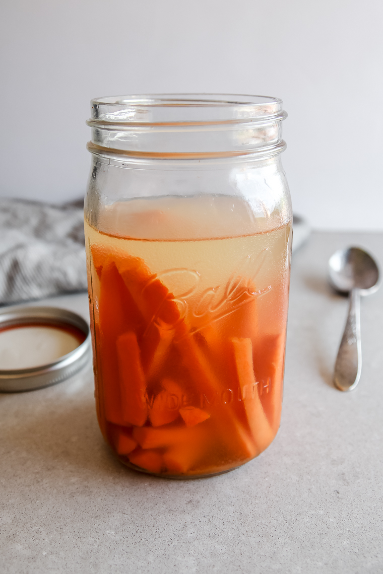 We enjoy these carrots with no added seasonings, but you can get creative! You may want to experiment adding peeled garlic cloves, fresh herbs, mustard seed, or peppercorns.